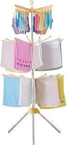 Baoyouni Foldable Clothes Drying Rack Collapsible Tripod Coat Hanger Corner Garment Storage Shelf Stand Portable Laundry Organizer Indoor Outdoor With 5 Adjustable Arms Ivory Home Kitchen Amazon Com